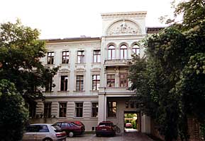 Weinbergstraße 43, Potsdam Restauratorische Untersuchung von Fassade und Innenräumen Ansicht der neu gefaßten Fassadenelemente, der Anstrich erfolgte entsprechend der Untersuchungsergebnisse (bauzeitliche Fassung)